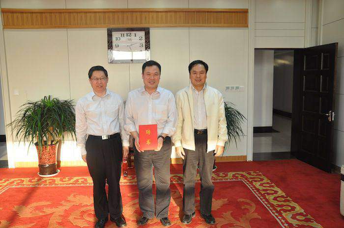 九月二十三日,我公司董事長(zhǎng)郭培勛先生(中)受聘山東輕工業(yè)學(xué)院教授聘書頒發(fā)儀式在學(xué)院會(huì)議廳舉行,山東輕工業(yè)學(xué)院校長(zhǎng)陳嘉川(左)親自為郭培勛先生頒發(fā)聘書,院黨委書記徐同文(右)出席了聘書頒發(fā)儀式。